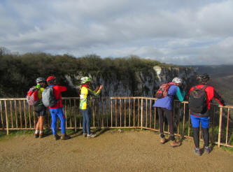 gorges de l’Aveyron, du lundi 4 au vendredi 8 mars 2024 Francis T. n’a pas eu tort de nommer printanière cette rencontre d’hiver, habituellement réservée à la fin du mois de février, car le temps fut doux en ce coin de France, assez au sud il est vrai, loin des massifs de moins en moins blanchis de neige. Depuis quelques années, le rendez-vous de la petite troupe informelle s’est déporté au début du troisième mois de l’année, plus à cause de la crainte des chasseurs (qui écument tous azimuts de septembre à février quasiment tous les jours de la semaine) que par la hantise des retours vigoureux de froidures sibériennes, de moins en moins probables avec l’avancée inexorable du changement climatique. ![]() Castelnau-Montmirail d’avant Francis à qui donc on avait un peu forcé la main, de son propre aveu, a proposé pour nous régaler un secteur qu’il connaît bien puisque résidant du côté de Montauban depuis quelques décennies, il a pas mal exploré avec son club les pistes, chemins et sentiers, sans compter les routes, mais pour ce qui est de ces dernières, c’est Georges G. qui s’est collé à la découpe de parcours accommodants pour les vétérans que nous sommes tous devenus. Or donc c’est autour du gîte du Moulin de Roumégous que nous irradierons, selon grosso modo les points cardinaux. Francis avait même prévu une escapade dès lundi pour les amateurs d’exploration supplémentaire, mais personne ne s’étant manifesté, la ronde autour de Puycelsi a été déportée pour vendredi. Manque de bol, les cols de la forêt de Grésigne, que beaucoup déjà connaissent (pas moi en tout cas), nous passeront sous le nez, la météo du dernier jour étant assez alarmiste en termes de fortes précipitations (ce qui se confirmera pour la route auto du retour pour l’ensemble des participants). Les participants ? Pas loin de la vingtaine, un peu moins que d’habitude, mais a-t-on déjà établi une moyenne statistique depuis les cinquante et quelques balades proposées depuis la première rencontre à Tende de septembre 1994 ? Il me souvient qu’on avait commencé par la douzaine peu ou prou, l’effectif jouant selon les années un peu l’accordéon. Ce n’est pas non plus la première fois que les cols, matière première des centcolistes, vont rester le parent pauvre de cette rencontre. Sur les trois jours de virée, il y en eut moins de la dizaine à glaner (je n’ai pas compté), mais qu’importe, ce qui nous réunit, c’est l’envie de nous revoir hors de notre train-train au pays, de confronter nos expériences d’avancée en âge en matière de vélo, de partager encore la joie de l’effort sur des terrains qu’on découvre ou qu’on revoit avec un autre regard, d’autres émotions. Les cols ? Peu donc. Le vtt ? Minoritaire face à l’écrasante majorité de rouleurs sur route, et JeanMichel qui avait inauguré l’assistance électrique après la pandémie aura fait des émules, tant au niveau des randonneuses que des lourds engins 26 ou 27 pouces, bien vrai Alain et Chantal, Marie-Agnès ? Il faut démystifier ce moyen technique de facilitation, ne plus opposer les tenants exclusifs du tout musculaire aux partisans du petit moteur ponctuel qui aide et défatigue. Maintenant, je n’irai pas voir ce que disent les règlements mis à jour de l’amicale des diagonalistes ou de la confrérie des cent cols, je n’appartiens plus à la première et n’ai jamais cotisé pour la seconde… ![]() La grand place de St Antonin Noble Val Donc pas plus de vingt, parce que, il est vrai, Milou et Jacques et Pascal ont été les empêchés de la dernière heure, parce que Gérard craint la longue route depuis Grasse, parce que Régis s’est trouvé retenu par une promesse familiale, parce que le grand Bernard de Castelnau le Lez avait d’autres routes à voir avec ses compagnons de balade du Clapas. Mais qu’importe, l’absence des uns fut compensée par la présence des autres (un Théo, un Jean-Yves qui paraît-il était du Montauban-Badalona de 1995, une Marie-Agnès, des nouveaux venus invités par Francis, plus ou moins charentais tous trois). Si on dut se passer de vin d’orange ou de citron, de fromages d’Auvergne ou du Cantal, du miel du cyclo apiculteur, du génépi des Alpes, on ne manquera pas de saucissons du terroir, de terrines paysannes, de liqueurs fortes, de bières parfumées, de vins à robe claire ou foncée, avec ou sans bulles. Tradition d’accueil oblige ! ![]() Grimpée première, la pente à deux chiffres y est ! Je suis donc arrivé en voiture solo en milieu d’après midi en cette ville de Saint Antonin Noble Val que je connaissais déjà, pour y être passé en fin des années soixante, à vélo déjà, peut-être en diagonale plus tard, ou en remontant vers Brest toujours in pedalibus, mais encore parce que j’avais découvert la zone en touriste bourgeois si j’ose dire, suivant les recommandations de tel ou tel guide. Ma pérégrination à essence me mena en ce doux lundi lumineux, par petits fragments du côté de La Voulte, pas celle du Rhône fougueux, mais proche de l’Orb, un coin avec chapelle que JPR nous fit découvrir lors d’une de ses nombreuses balades -découverte cyclotouristiques entre amis ; puis vers le terrain inconnu filant en forte pente vers la croix perchée au dessus de St Amans Soult ; et je revis pas loin de St Antonin la belle petite cité de Castelnau–Montmirail dominée par sa lourde croix porteuse d’un Christ non moins géant. Curieusement, je pensais que le Lot traversait la ville de Saint Antonin, sise en Tarn et Garonne, on me confirmera vite que c’est bien l’Aveyron qui coule ici. Il coulait bien d’ailleurs, plein d’eaux marronneuses et abondantes suite à des pluies assez soutenues des jours passés. ![]() Là où est le calcaire est l’argile ! Ces précipitations de fin d’hiver, indispensables pour la recharge des réserves, souterraines ou 