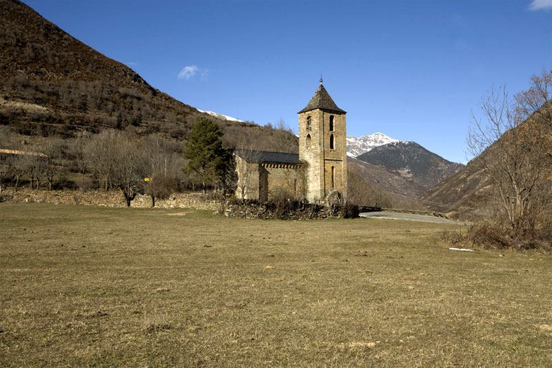 San Feliu de Barruera: édifice du XIè siècle à nef unique terminée par une abside semi-circulaire.. |